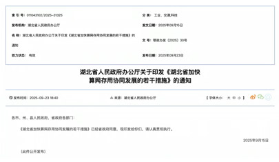湖北出台“算网存用”新政:重金补贴算力建设,推动存算协同发展